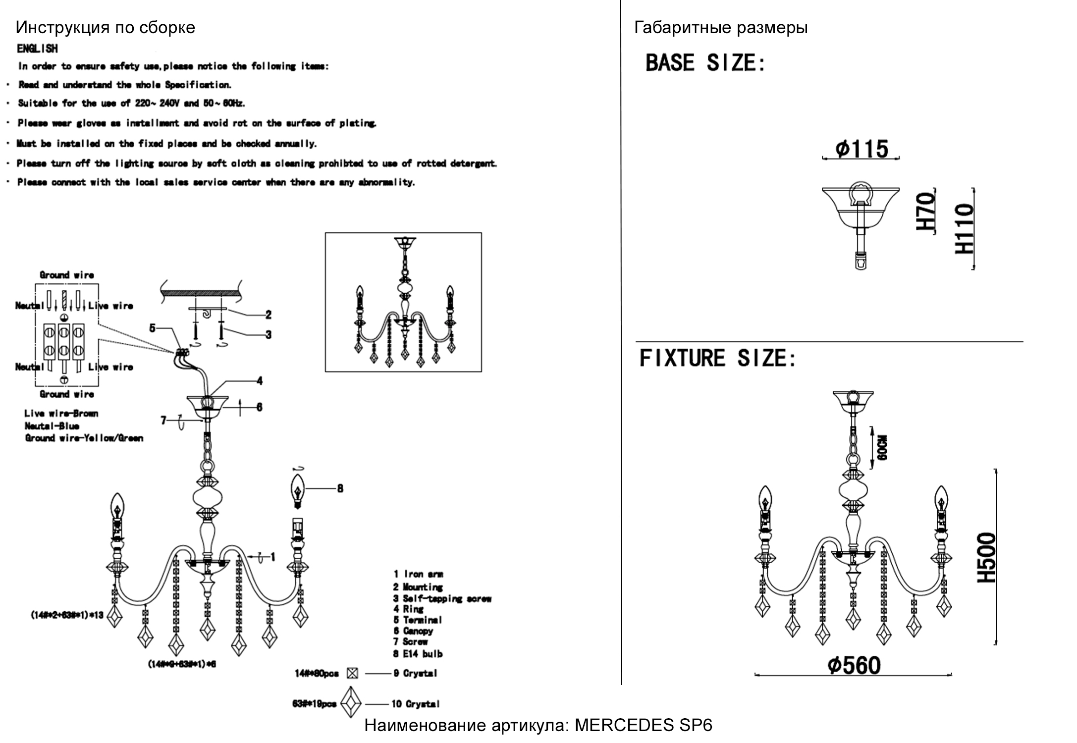 Люстра Crystal Lux MERCEDES SP6 GOLD/COLOR