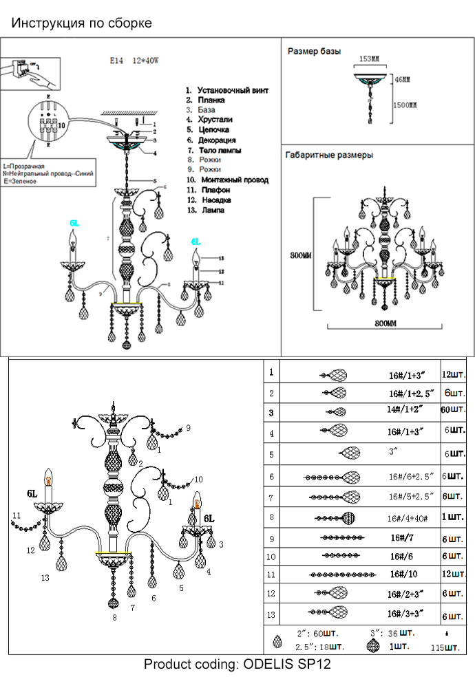 Люстра Crystal Lux ODELIS SP12 GOLD