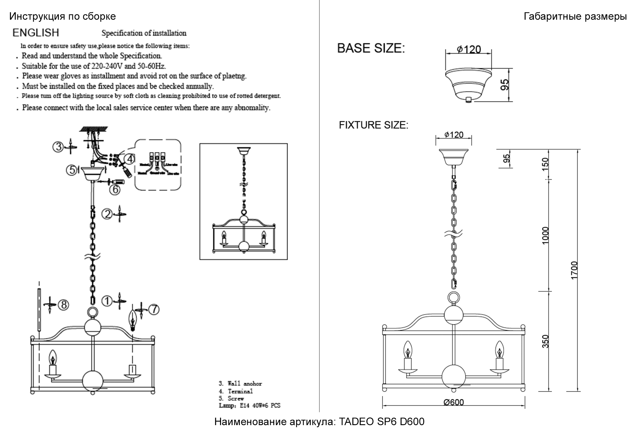 Люстра Crystal Lux TADEO SP6 D600 CHROME/TRANSPARENTE