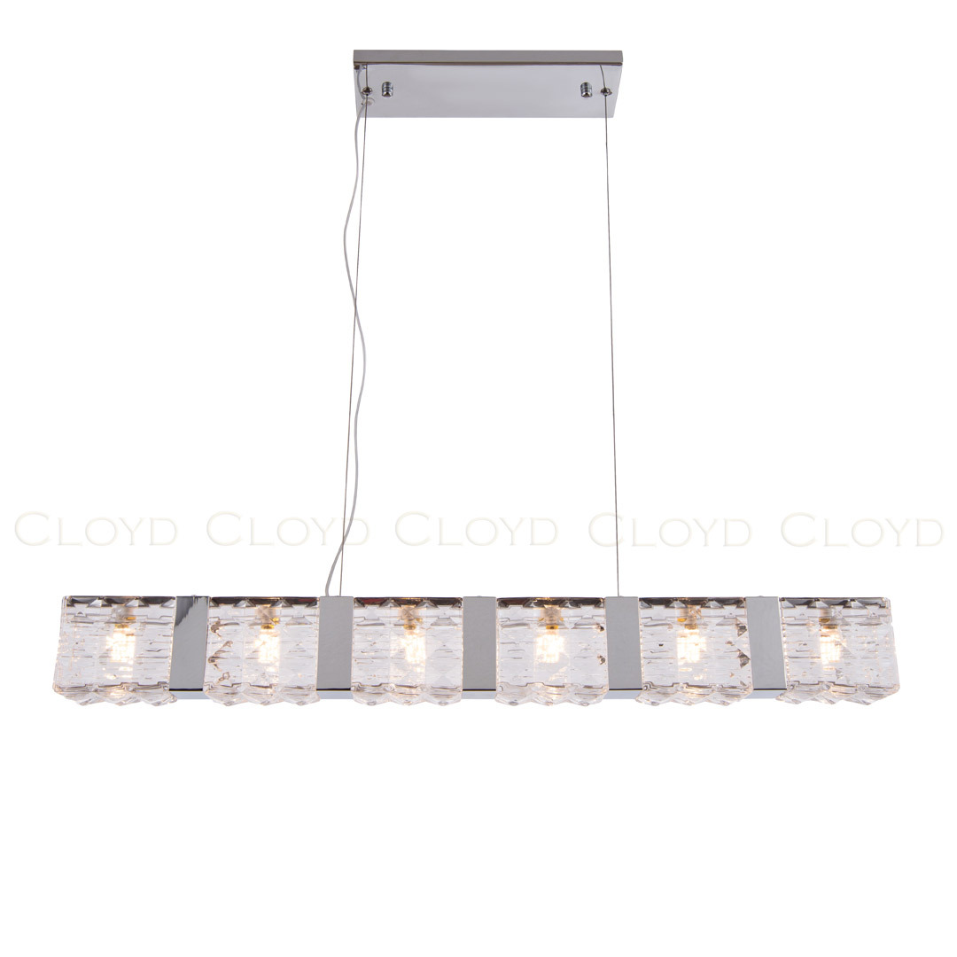 Подвесной светильник Cloyd CORUND (Клойд Корунд) P6 / арт.10711, ширина: 86 см. высота: 11 см глубина: 8 см, источник света: G9 х 6 шт, цвет металла - хром блестящий. Гарантия: 1 год.