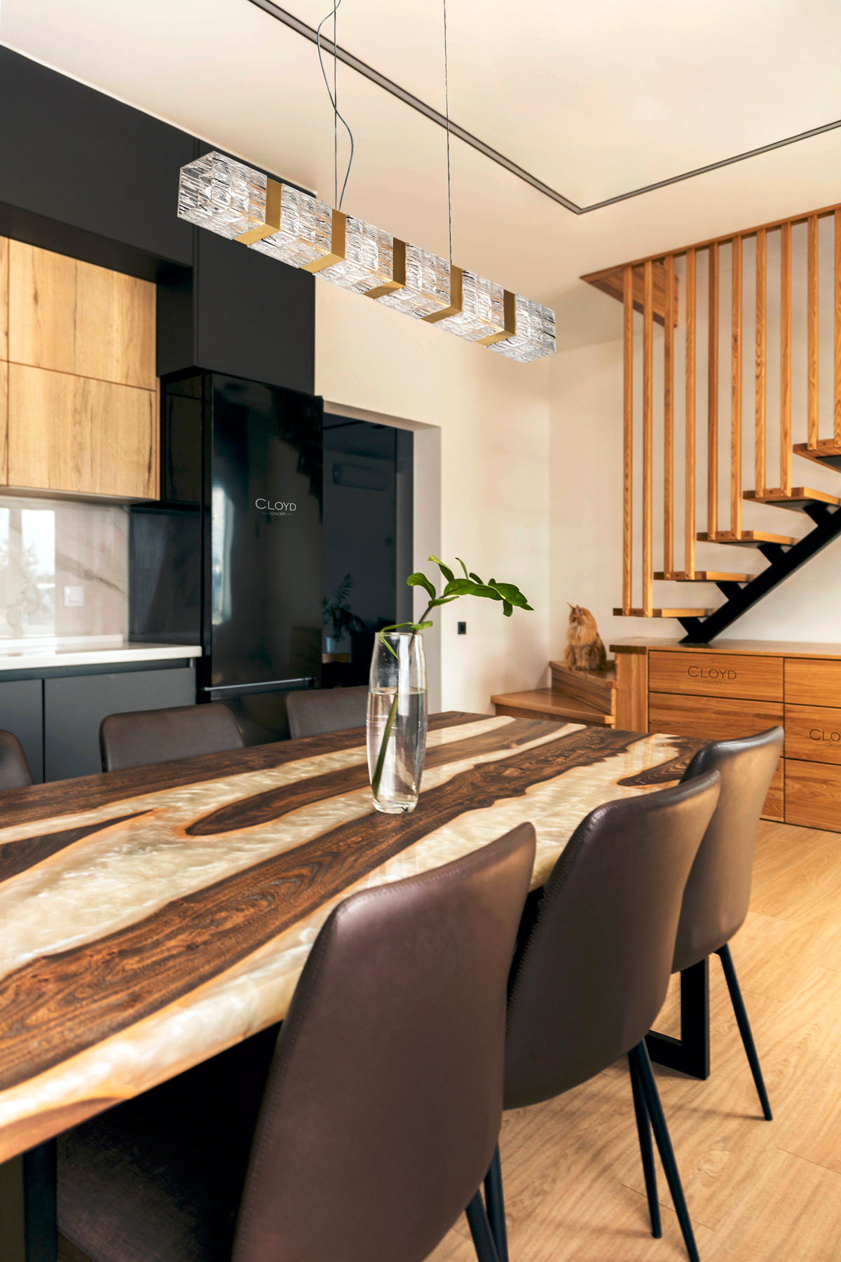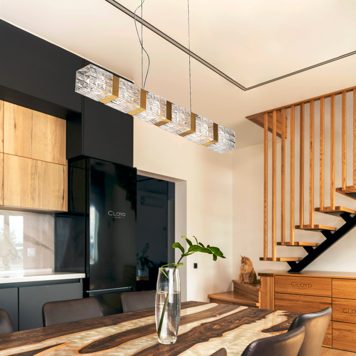 Подвесной светильник Cloyd CORUND (Клойд Корунд) P6 / арт.10680, ширина: 86 см. высота: 11 см глубина: 8 см, источник света: G9 х 6 шт, цвет металла - латунь. Гарантия: 1 год.