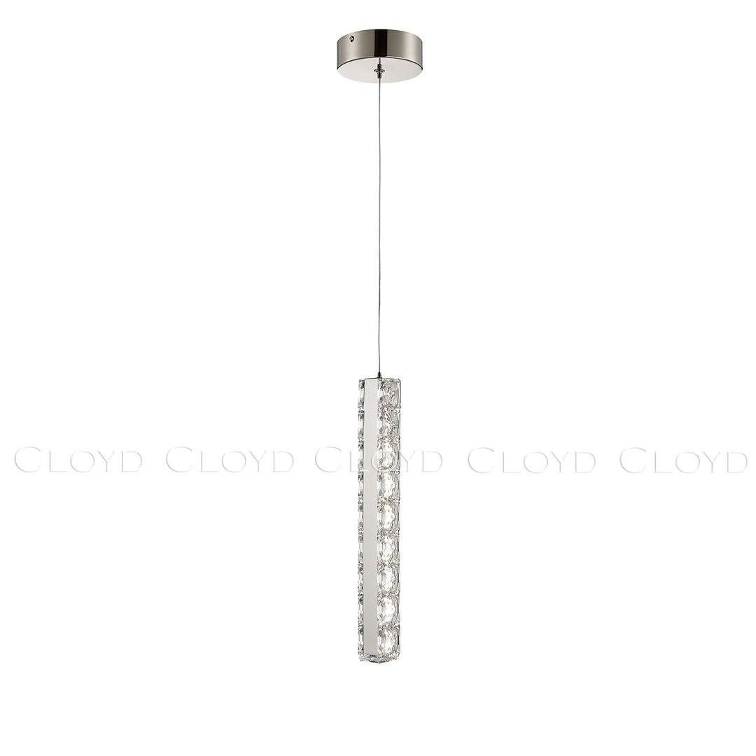 Подвесной светильник Cloyd ELATA (Клойд Элата) P1 / арт.11559, ø: 6 см. высота: 38 см, источник света: LED 10 Вт, цвет металла - хром блестящий. Особенности: хрусталь К9.Гарантия: 1 год.