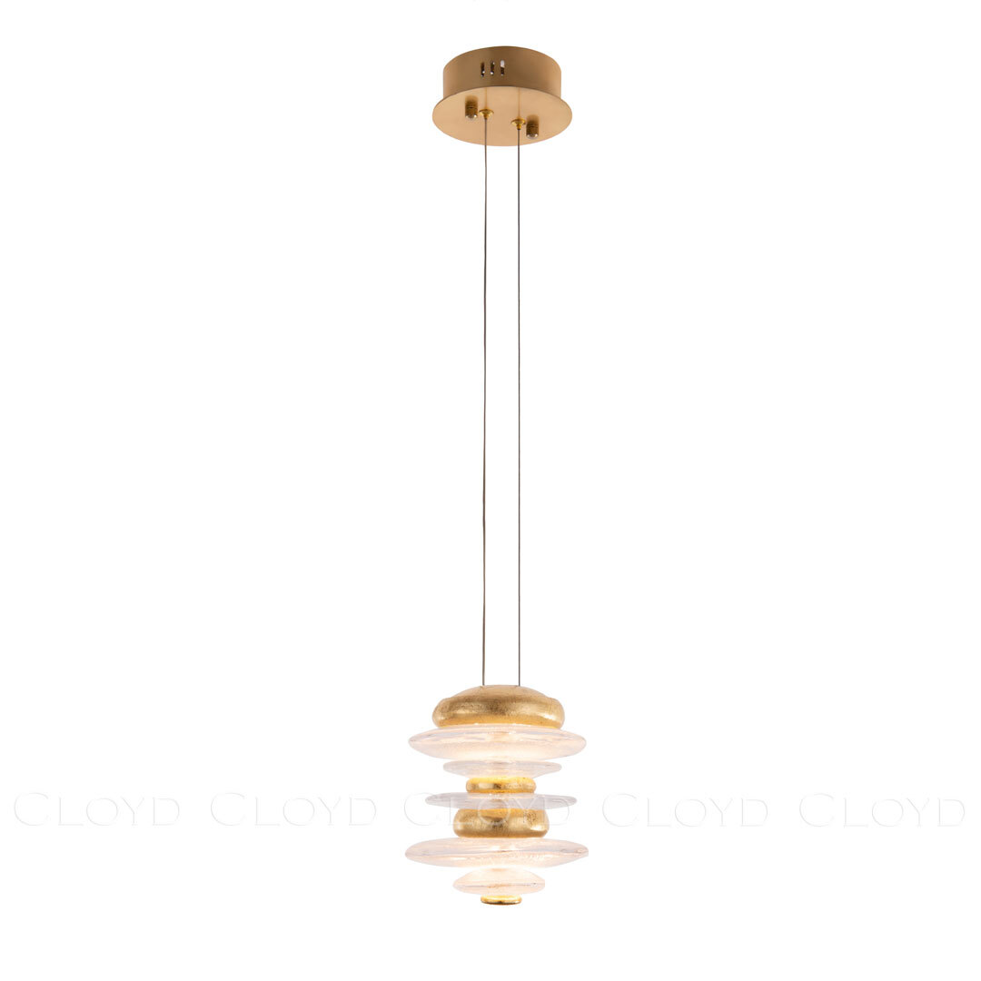 Подвесной светильник Cloyd GEFEST (Клойд Гефест) P2 / арт.11185, ø: 15 см. высота: 18 см (подвес в комплекте - до 120 см), источник света: LED 10 Вт (3000 К, теплый свет), цвет металла - золото сусальное. Гарантия: 1 год.