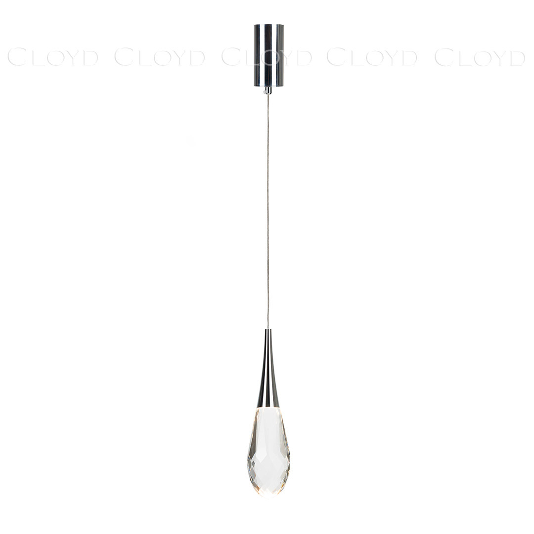 Подвесной светильник Cloyd IONIC (Клойд Ионик) P1 / арт.11565, ø: 8 см. высота: 32 см (подвес в комплекте - до 200 см), источник света: LED 6 Вт, цвет металла - хром блестящий. Особенности: хрусталь К9.Гарантия: 1 год.