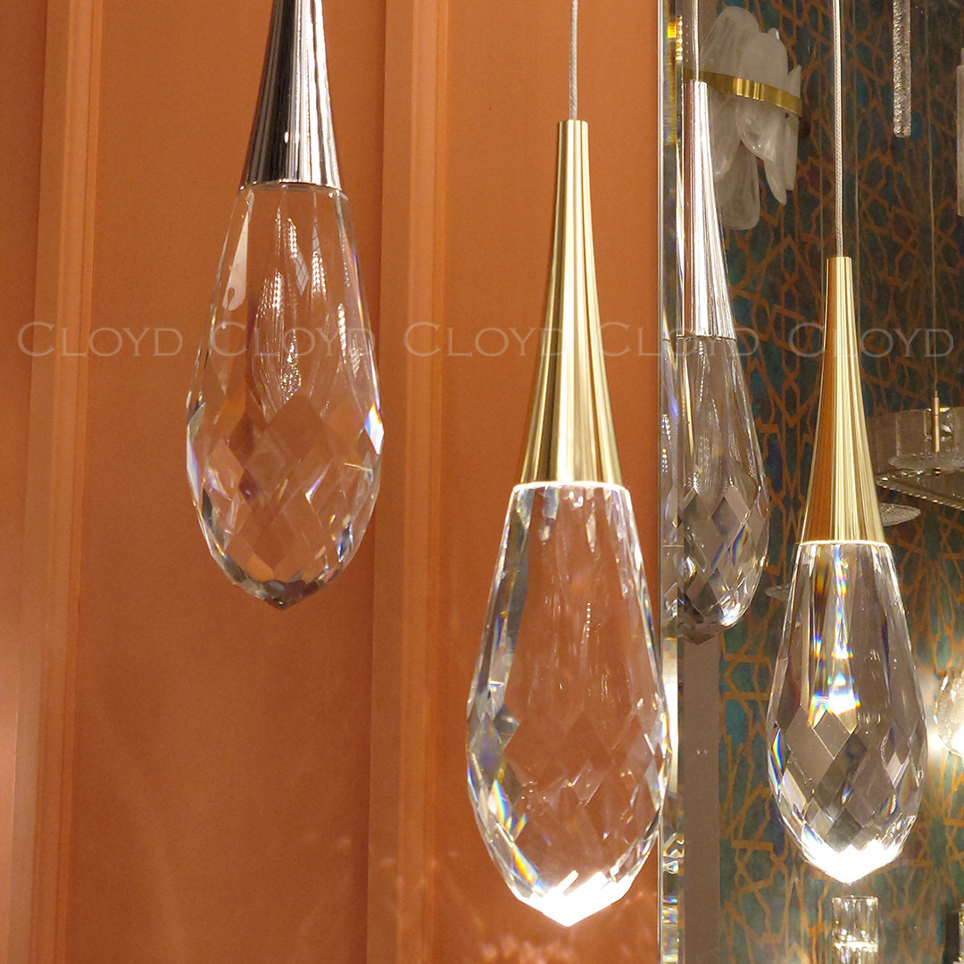 Подвесной светильник Cloyd IONIC (Клойд Ионик) P1 / арт.11564, ø: 8 см. высота: 32 см (подвес в комплекте - до 200 см), источник света: LED 6 Вт, цвет металла - золото блестящее. Особенности: хрусталь К9.Гарантия: 1 год.