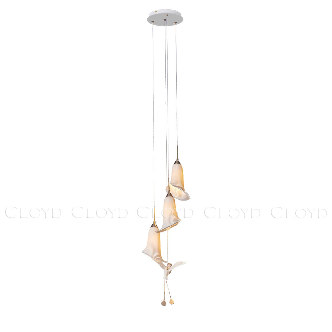 Подвесной светильник Cloyd OSANNA (Клойд Осанна) P3 / арт.11888, ø: 28 см. высота: 150 см, источник света: E14 х 3 шт, цвет металла - белый (окраска). Фурнитура - золото. Особенности: керамика высокого качества, птица выполнена из фарфора.Гарантия: 1 год.