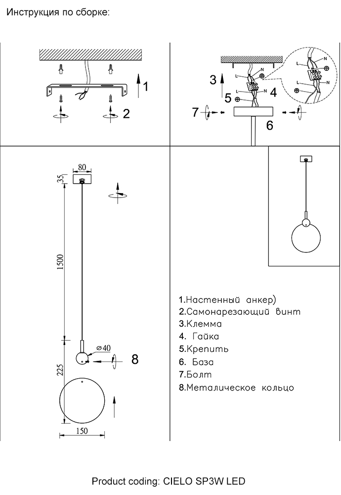 Высота с цепью/тросом, мм
