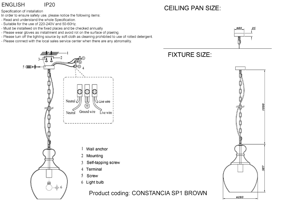 Светильник подвесной Crystal Lux CONSTANCIA SP1 BROWN