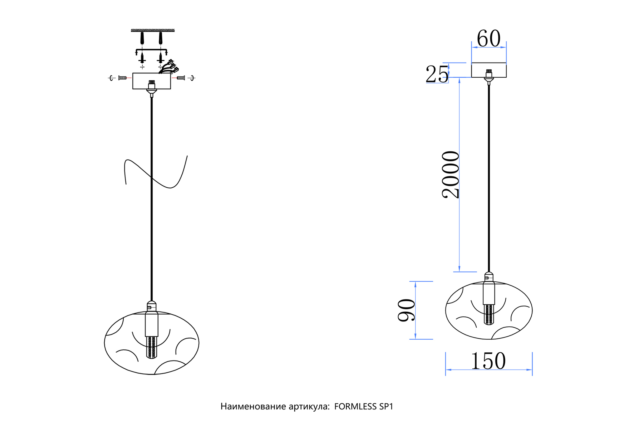 Светильник подвесной Crystal Lux FORMLESS SP1 BLUE
