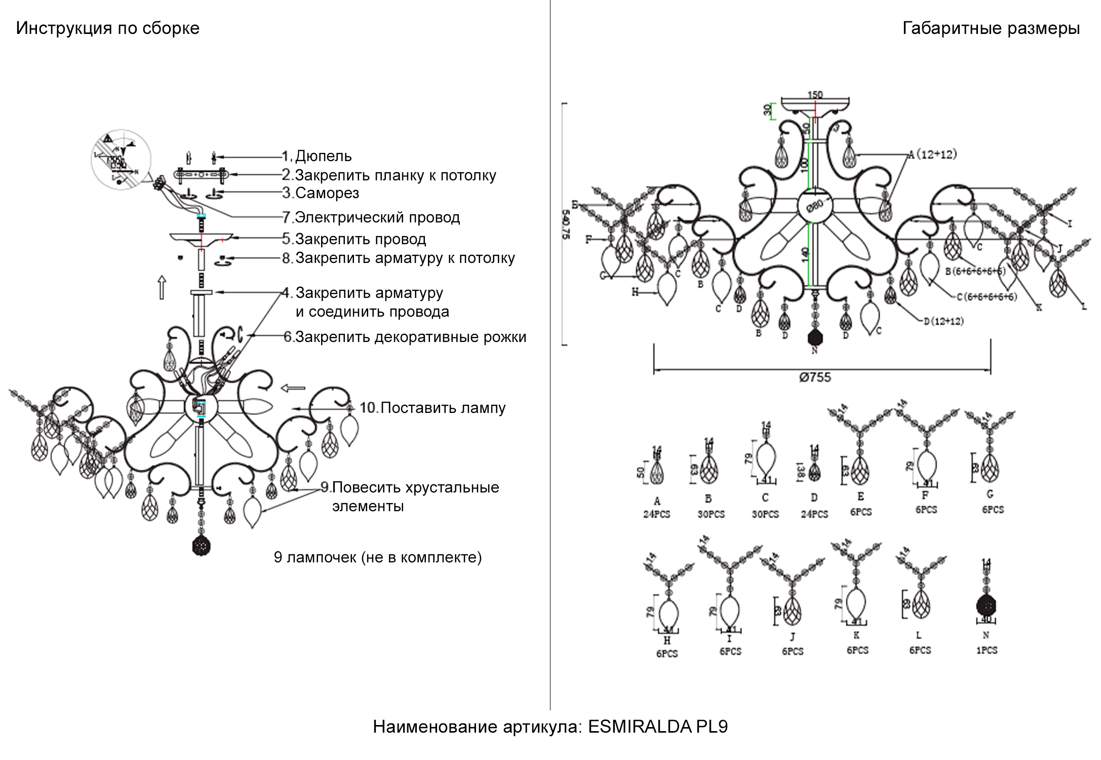 Светильник потолочный Crystal Lux ESMIRALDA PL9 GOLD