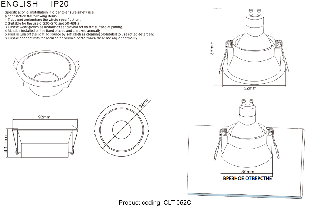 Светильник встраиваемый Crystal Lux CLT 052C BL-GO